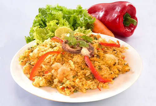 Un plato típico de varios países latinos elaborado a base de arroz y una exquisita mezcla de mariscos (calamar, filete de robalo, palmito de cangrejo y camarón) para sorprender y dejar una grata impresión en sus invitados.