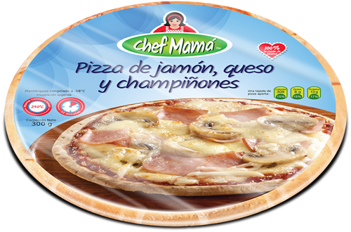 La pizza napolitana más famosa, con una exquisita combinación de jamón, queso y champiñones. Una rica solución para sacarnos de un apuro cuando hay poco tiempo para cocinar.